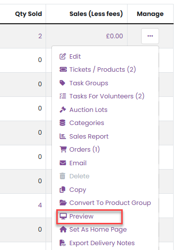 You can achieve this by ensuring that your product has sales dates that are in the past. Adding sales dates to your product will override the event sales dates and your products would only show during those dates. To do this select "Tickets/Products from the event management menu for the required event, and then "Edit" from the product manage menu: