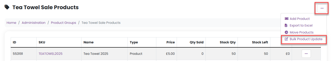 3. In the main Manage menu, click Bulk Product Update.