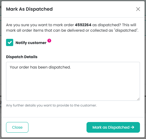 Can I notify customers when their order is dispatched?