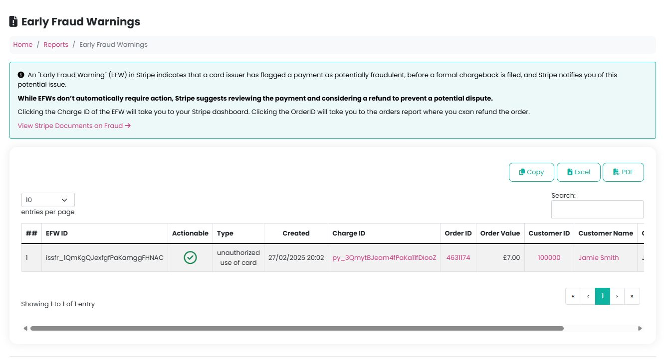 Both PTA Events and Stripe take fraud prevention extremely seriously. To support this, we provide an Early Fraud Warning (EFW) report, using data available directly from Stripe.