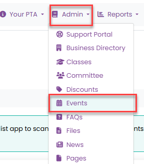 Before you can add "early bird" tickets, you would need to ensure you have an event set up. To add an event, browse to "Admin" > "Events" and then click "Add Event".