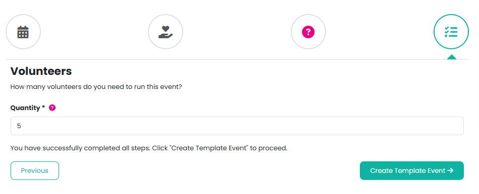 Once you have completed all steps in the wizard, click Create Template Event to add the event to your system.